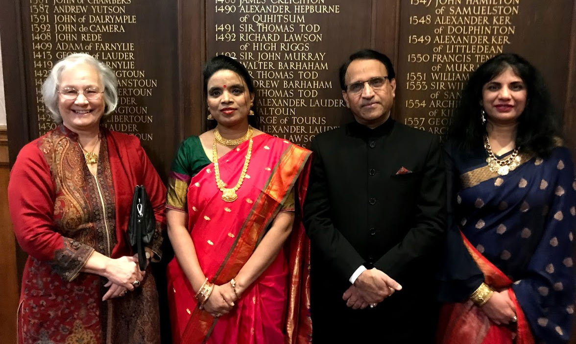 On February 9, Her Excellency Mrs Ruchi Ghanashyam, Indian High Commissioner to the UK, visited Scotland for the first time and we were able to meet and talk with her during a reception at the Waldorf Astoria Hotel in Edinburgh for Indians and Indophiles in the community. Her Excellency is a charming, friendly but obviously very able lady with an impressive provenance of diplomatic positions both globally and in India. She was accompanied by her husband, himself a retired ambassador. Her Excellency is quite obviously going to be, by her initial actions since her arrival, an energetic and committed high commissioner/ambassador and will further the cause of India–UK synergy and good relations. I look forward very much to further meetings.